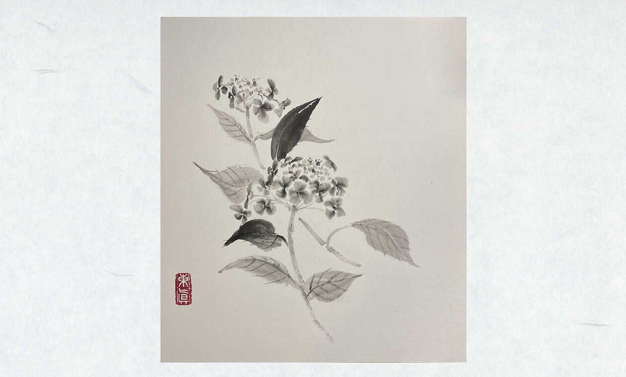 はじめてさんの墨絵レッスン『額紫陽花で学ぶ 花の配置と描き分け方』